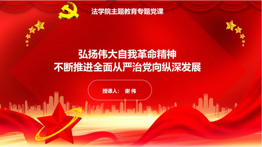 2023年5月16日下午,TapTap点点官方网站副院长谢伟在TapTap点点官方网站第二会议室讲授主题为“弘扬伟大自我革命精神、不断推进全面从严治党向纵深发展”的专题党课。刑法学、诉讼法学研究生党支部党员以及入党积极分子、党员发展对象参加学习。