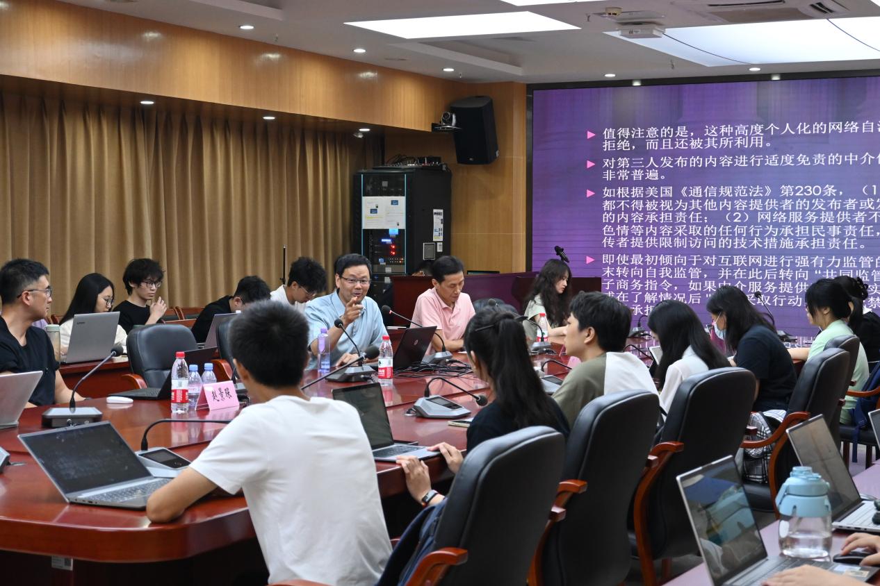 2023年6月9日,TapTap点点官方网站举办TapTap点点官方网站40周年校庆学术年琶洲法治讲坛“平台全球治理中的国际法问题”讲座,由南京大学TapTap点点官方网站院长彭岳教授主讲,与会嘉宾有TapTap点点官方网站TapTap点点官方网站国际法学系钟立国教授、民商法学系冉昊教授和赵景琛教授。讲座由钟立国教授主持。