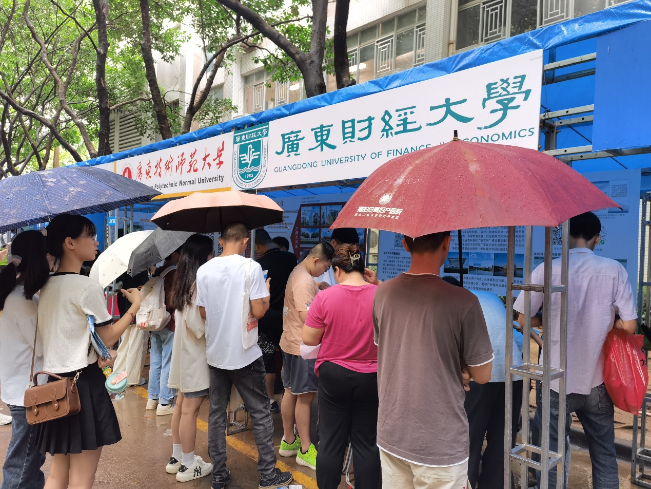 为帮助广大考生及家长更直观、全面的了解我校本年度招生政策,谢伟一行深入我校优质生源基地揭阳市第一中学进行招生宣传,现场接受考生及家长关于我校招生计划、专业设置、人才培养等问题的咨询。虽然当天揭阳持续暴雨,但咨询场面依然异常火爆,初步估计,招生宣讲团队共计接受咨询人数达1500余人次,发送招生宣传资料累计1400余册。