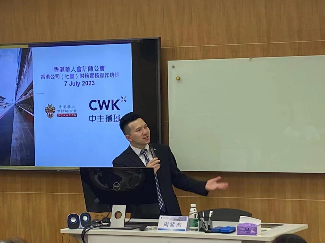 邓灿晖在致辞中指出就中央和国家的要求以及香港的实际情况,目前财务人员需要唤醒自身的财务天赋、挖掘财务潜能,通过持续的培训,提高财务工作水平。