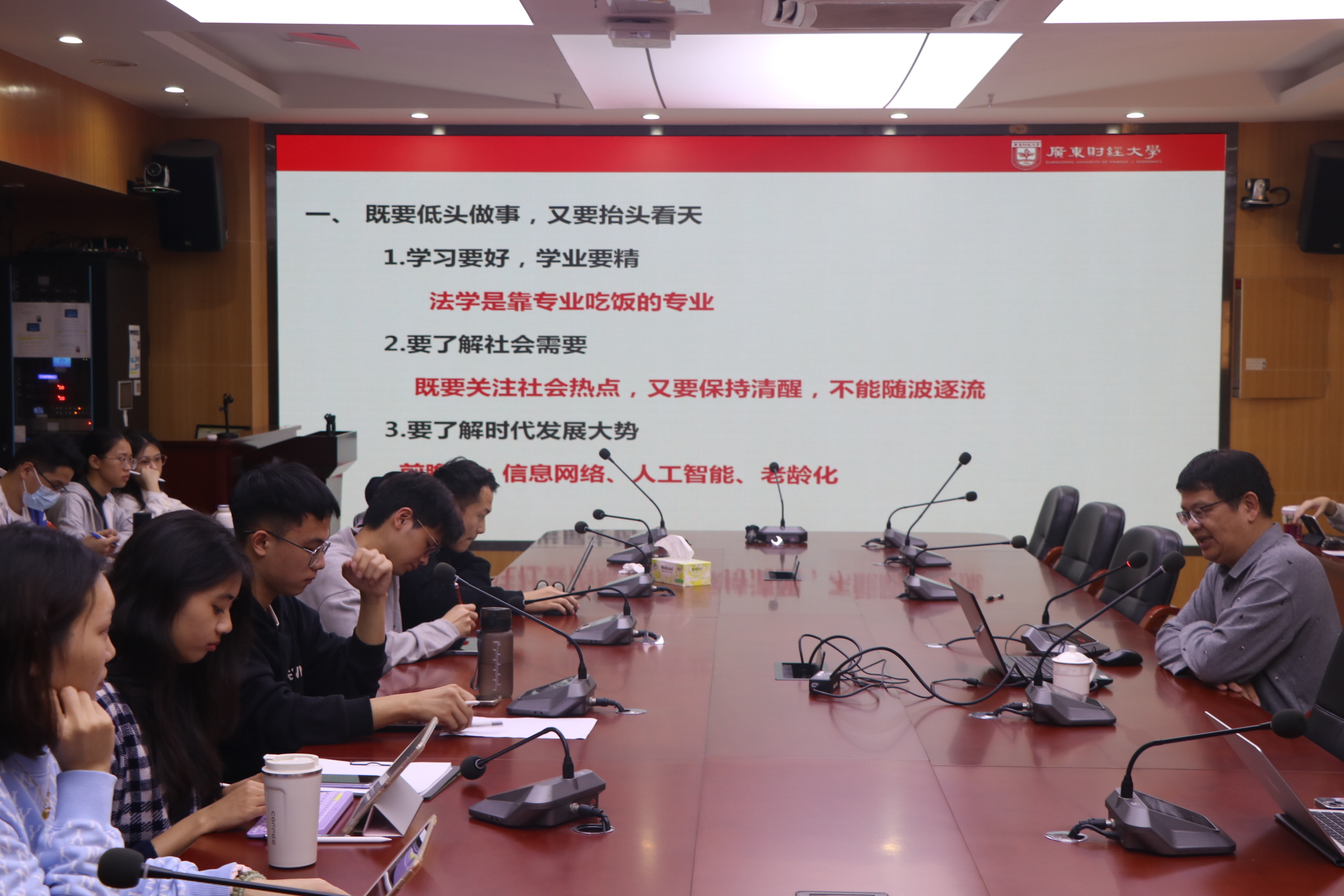 鲁院长谈到,作为一名法学硕士研究生,首先要学会认识社会,尤其是关注社会热点问题。随着人工智能、大数据、区块链等新技术的不断出现,法律领域正面临诸多挑战,社会对法学人才培养水平要求也越来越高。这就要求我们要不断自我更新,通过参与社会实践,积累知识和经验,不断扩大知识面和视野,全面提升对社会的认知能力和洞察力,由此才能适应社会发展需求与挑战。