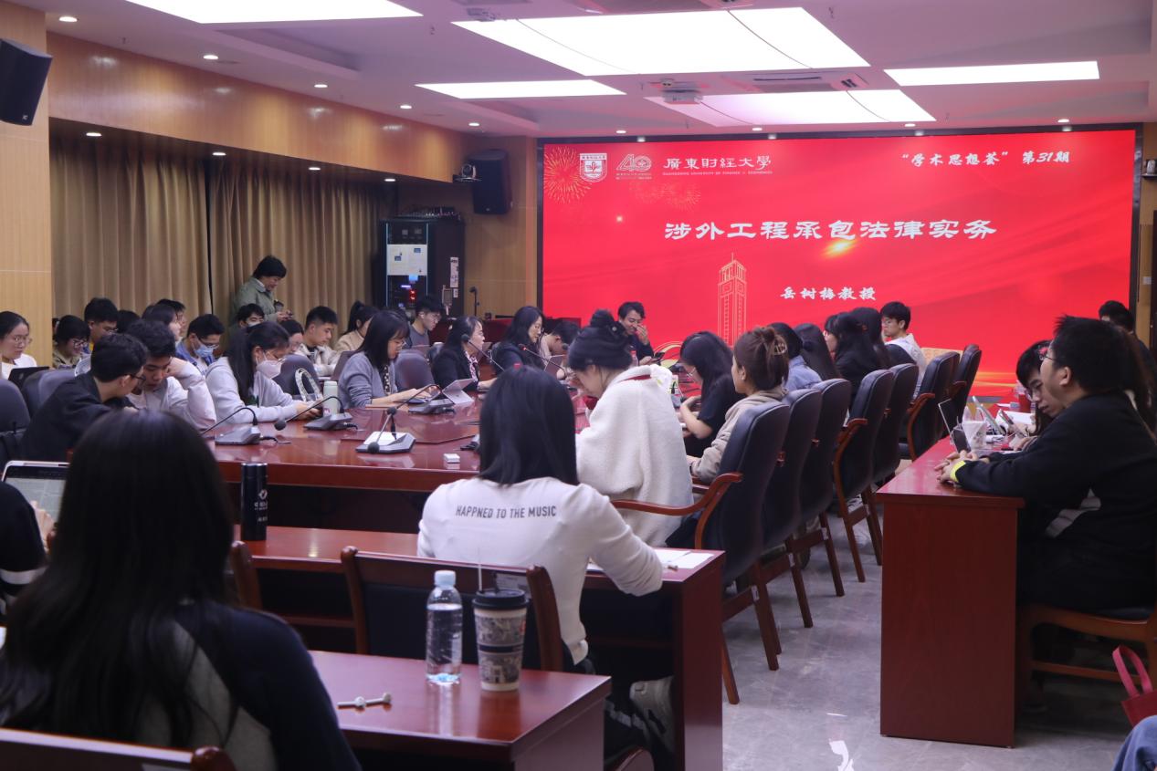 2024110日,TapTap点点官方网站邀请西南政法大学国际TapTap点点官方网站教授、博士生导师、国际经济法学科方向负责人岳树梅教授,作“涉外工程承包法律实务”专题讲座。本次讲座于立德楼第一会议室举行,TapTap点点官方网站朱姝副教授主持讲座,兰州工商学院王小花老师以及TapTap点点官方网站研究生90余人参加本次讲座。