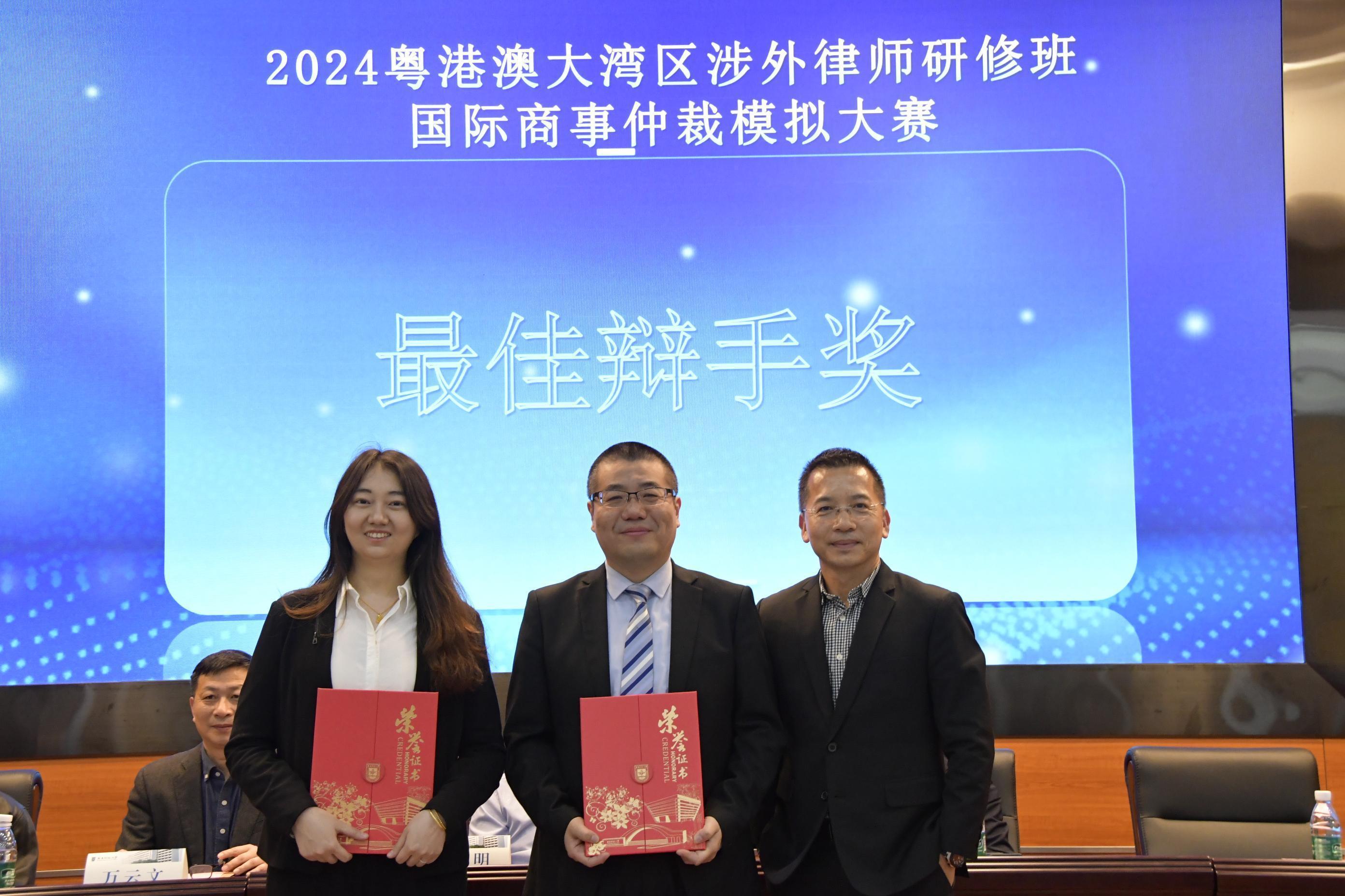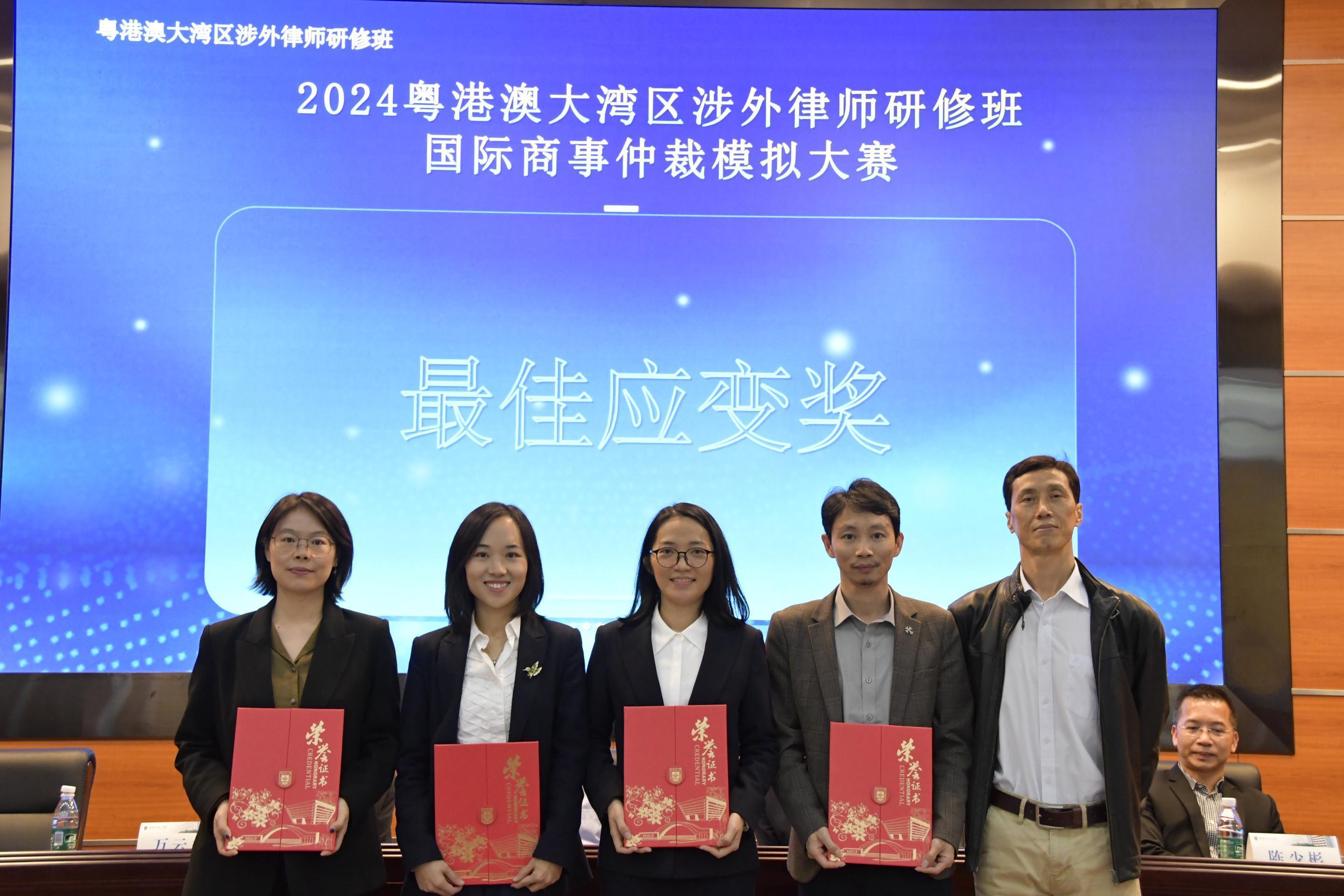 经过1月14日晚的淘汰赛,四支队伍脱颖而出,成功进入今日大赛。在半决赛和决赛的现场,他们围绕国际贸易合同纠纷案例的管辖问题、仲裁请求、回避问题、送达问题等展开讨论与抗辩,各位选手逻辑缜密、妙语连珠,表现优异。现场仲裁员引导双方进行沟通和讨论,对关键问题犀利提问。大赛结束后,评委点评本次大赛,对参赛选手的精彩表现表示认可,并且就细节问题提出努力方向。经过激烈角逐,大赛最终决出团体奖一等奖1名、二等奖1名、三等奖1名、优胜奖1名以及优秀组织奖1名;个人奖最佳辩手奖2名、最佳风采奖、最佳应变奖各4名。获得最佳风采奖:程雨荻、武晓春、钟祎明、杨广新学员;最佳应变奖:叶锦彦、罗丽、李韵华、邓子麟;最佳辩手奖:孙佩瑶、谈强;优秀组织奖:第九组学员;优胜奖:第四组学员;季军组;第五组学员;亚军:第二组学员;获得最高荣誉冠军奖的是第八组学员。