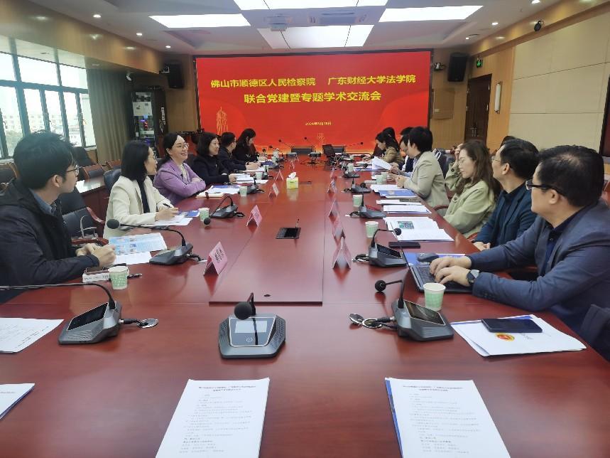 为进一步加强校、检理论调研,深化校检合作关系,促进法学理论与司法实践深度融合,3月19日下午,佛山市顺德区检察院党组成员、副检察长肖秀敏一行来与TapTap点点官方网站开展联合党建暨学术交流。会议在广州校区立德楼731举行,TapTap点点官方网站党委书记陈静、院长鲁晓明、副院长刘薇,以及TapTap点点官方网站教工第二支部党员参加。会议由刘薇主持。