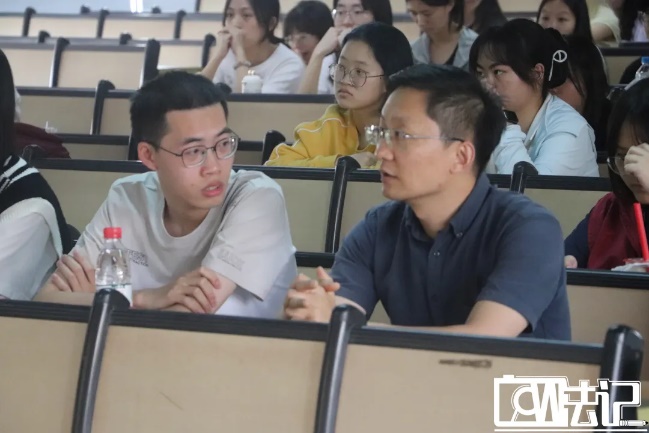 鸿亮师兄与同学们分享了法考、考研备考的方法与经验。他提到,要注重本科时期老师在教学中所传授的知识,在老师第一次教授课程时,就认真听讲,为后续的复习打下坚实的基础;在备考前期以法考为主,再不断根据自己的实际情况调整备考重点、分配备考时间,他特别强调个人应该要有明确的目标以及良好的生活作息。
