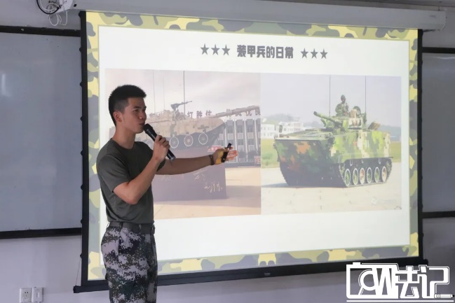 他围绕“装甲兵的日常”以及“离云朵最近之处”两部分展开从军经历的分享,他首先提到了他在部队训练经历,并给同学们介绍了一些军事知识,然后提到了他经历过的军事任务,接着向同学们展示了高原边境美丽的祖国山河,最后还和同学们分享了他在高原时的军旅生活。除此之外,黎智豪同学还从经济待遇与就业创业政策两个方面向大家讲解了大学生应征入伍政策简介。经济待遇方面的内容包括义务兵家庭优待金、进疆进藏补贴、大学毕业生优待等;就业创业政策方面的内容包括公务员考录优惠、国有企业单位定向招聘,就业服务等。