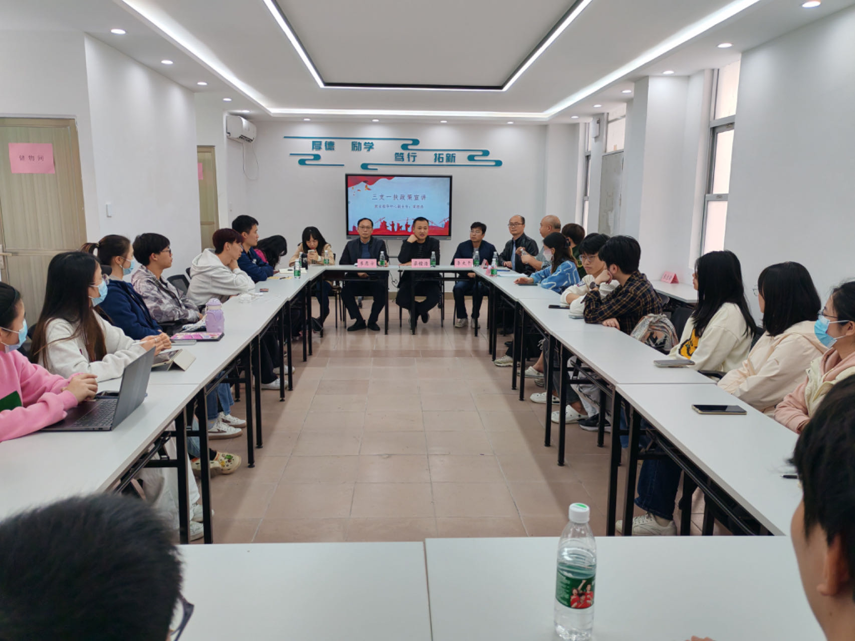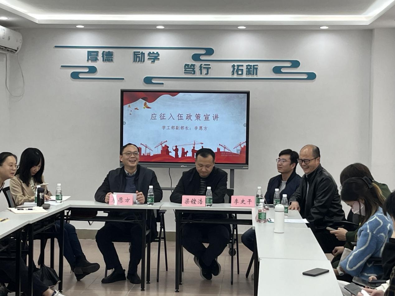 为使TapTap点点官方网站同学对基层就业政策有更加清晰、深入、全面的了解,主动融入国家发展大局,积极投入基层就业,TapTap点点官方网站于2024年1月5日下午2点在广州校区杜鹃苑“一站式”学生社区党团活动室举办基层就业政策宣讲会。本次宣讲会邀请到校就业指导中心副主任梁铿浩、校团委校团委社会实践与创新创业部副主任李史干、校武装部副部长李愿方以及TapTap点点官方网站2021级学生李哲霖进行分享。TapTap点点官方网站党委副书记方继勇、工商管理学院党委副书记严复淇、金融学院党委副书记吴少莹、智能财会管理学院党委副书记吴斯娜、TapTap点点官方网站辅导员张佳颖、智能财会管理学院陈晓东等出席宣讲会,TapTap点点官方网站本科生以及杜鹃苑社区共40余名学生参与本次宣讲会。
