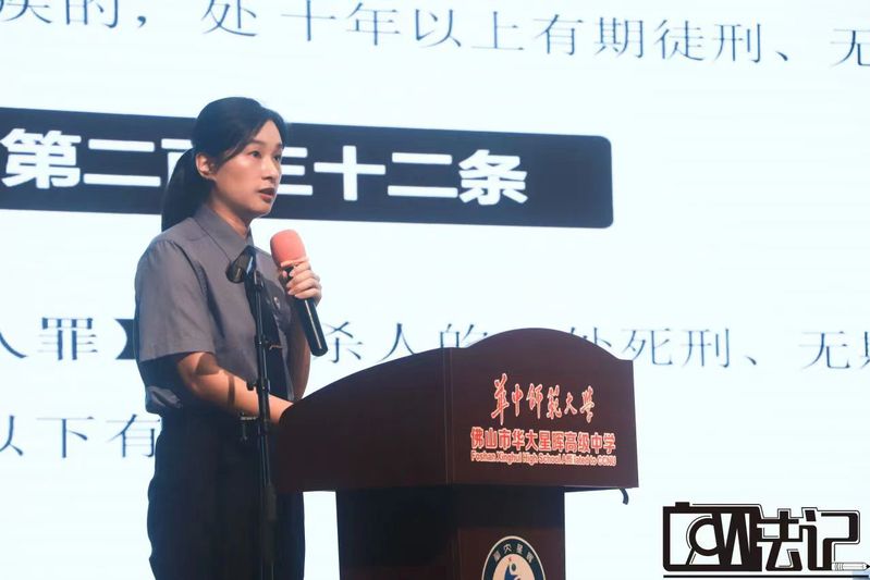 三水区司法局党组成员、政工室主任胡英姿进行总结发言。她表示,栩栩如生的普法情景剧表演,让同学们真实地感受到了校园欺凌对身心的危害和对未成年人的不良影响,而模拟法庭环节和案例讲解则让同学们学会如何运用法律武器保护自身合法权益并帮助身边的同学免遭校园欺凌。胡主任提醒同学们,校园欺凌并不遥远,而是实实在在发生在你我身边的,希望同学们能在活动中有所收获,在日常生活中理性处理人际关系矛盾,营造积极友好、和谐向上的氛围,坚决不做霸凌者、旁观者和受害者。