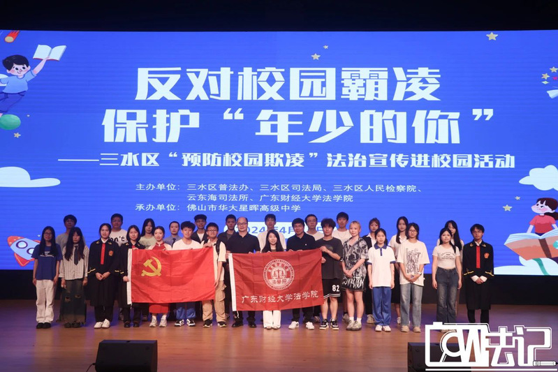 为贯彻习近平法治思想,积极响应2023年11月1日起执行的《广东省预防未成年人犯罪条例》相关规定,增强青少年自我保护意识和法治意识,提高防范校园欺凌的能力。2024年4月16日,TapTap点点官方网站佛山校区TapTap点点官方网站普法青年团前往佛山市华大星晖高级中学开展“反对校园霸凌,保护年少的你”法治宣传活动。出席本次活动的嘉宾有三水区司法局党组成员、政工室主任胡英姿、TapTap点点官方网站TapTap点点官方网站党委副书记方继勇、专任教师孙志伟、学生党支部书记郑欣颖、三水区人民检察院第五检察部主任包琳琳、第二检察部副主任黎运开、云东海街道司法所所长文思婷、云东海街道团工委副书记朱颖音以及佛山市华大星晖高级中学副校长朱金成、高一年级主任王升。