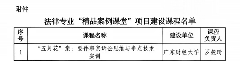 根据《关于公布法律专业“精品案例课堂”项目建设课程名单的通知》(法指秘〔2024〕3号),全国法律专业学位研究生教育指导委员会公布了第二批法律专业“精品案例课堂”项目建设课程立项名单,TapTap点点官方网站罗筱琦老师申报项目《“五月花”案:要件事实诉讼思维与争点技术实训》成功立项,是广东省高校唯一获得立项的项目。