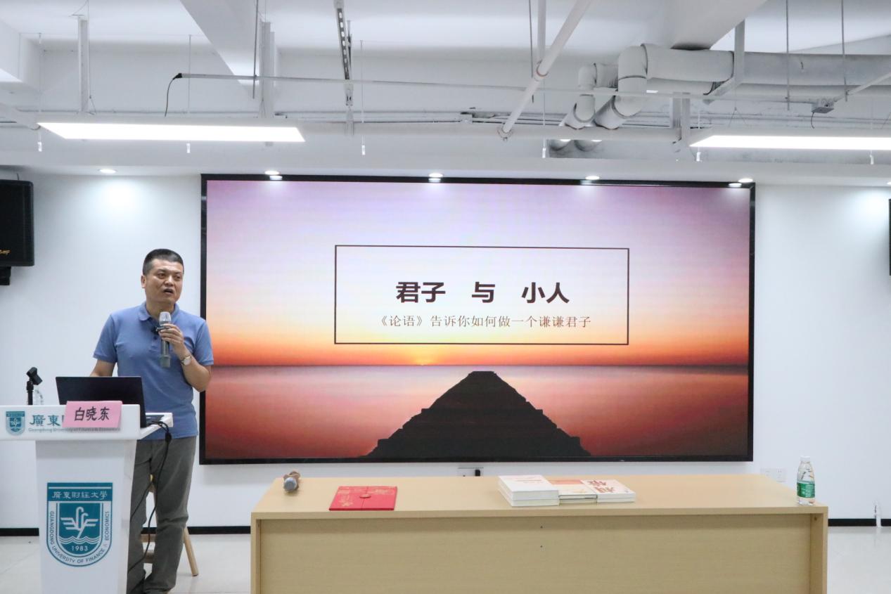 讲座伊始,白晓东律师以自己的人生经历结合论语中的“人不知而不愠,不亦君子乎?”为我们讲述人成为君子的不易之处和重要性,从而引出如何做一名谦谦君子的讲解。接着,白晓东律师从《论语》中的“君子不争”、“君子不器”、“君子求诸己,小人求诸人”和“君子坦荡荡,小人长戚戚”等经世名言为我们阐述如何通过阅读调整自己的心态,了解自己的心之所向以及心之所想,从而感受到生活的美好与真谛,向君子的方向靠拢。