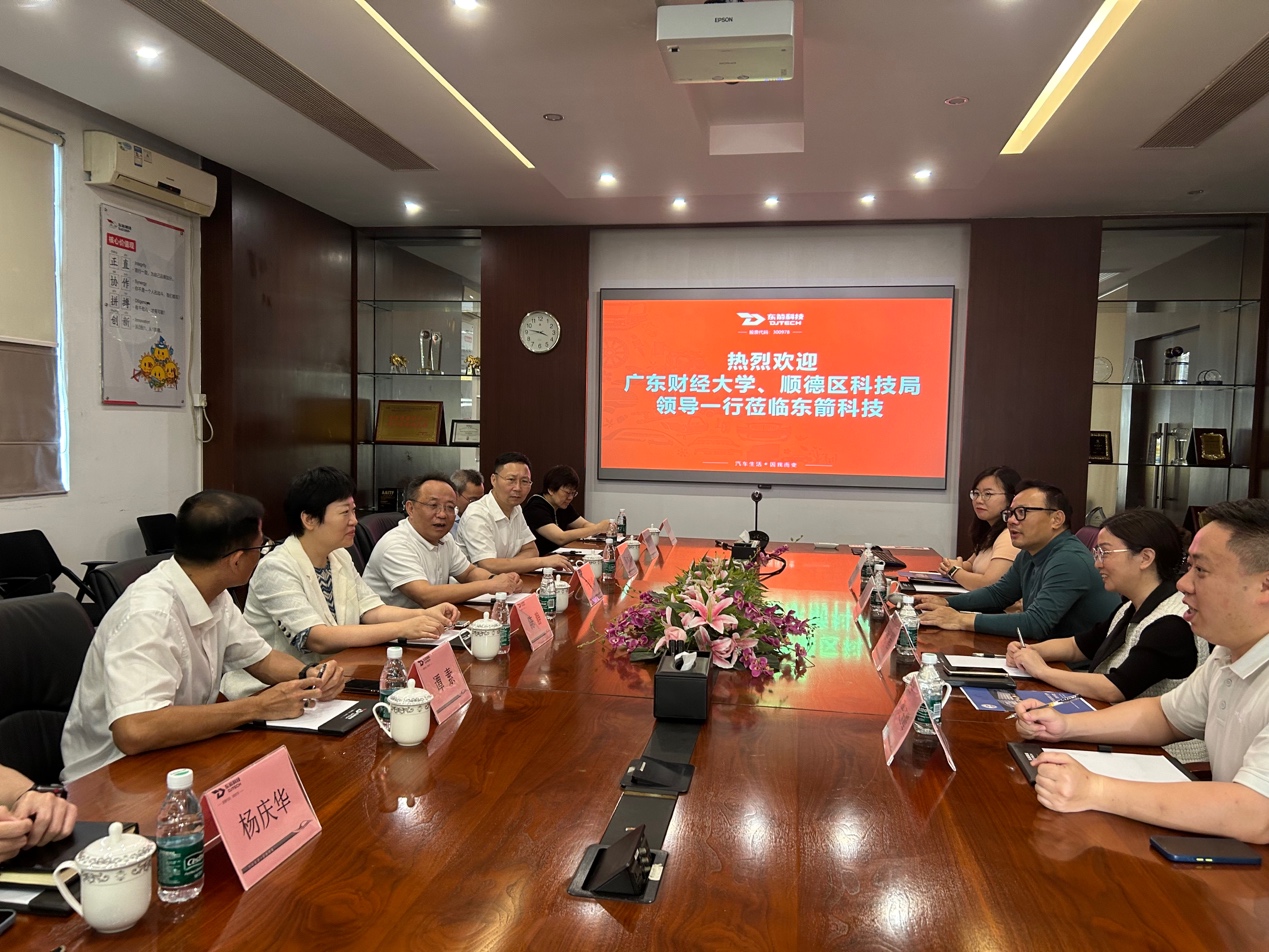 随后,于海峰校长一行在顺德区科技局局长谭素的陪同下走访了东箭科技和中盈盛达两家上市企业。于海峰一行深入了解企业经营情况和发展规划,并与东箭科技总经理罗军、中盈盛达董事长吴列军及相关职能部门负责人围绕产学研及学生实习就业等方面进行了交流座谈,促进院校政企资源共享和共同发展。