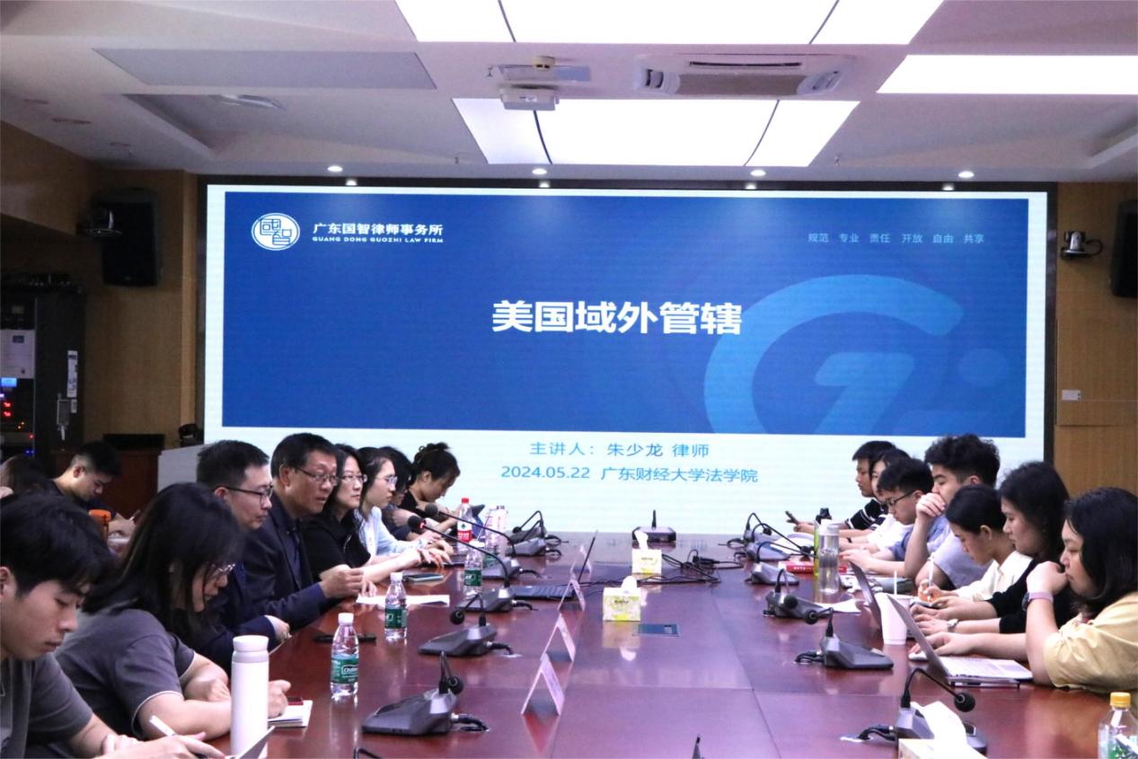 2024年5月22日,TapTap点点官方网站邀请广东国智律师事务所高级顾问朱少龙博士、广东国智律师事务所副主任吴悦艺律师作“美国的域外管辖”专题学术讲座。本次讲座于立德楼731会议室举行,TapTap点点官方网站朱姝副教授主持讲座,40余名研究生参加本次学术讲座。