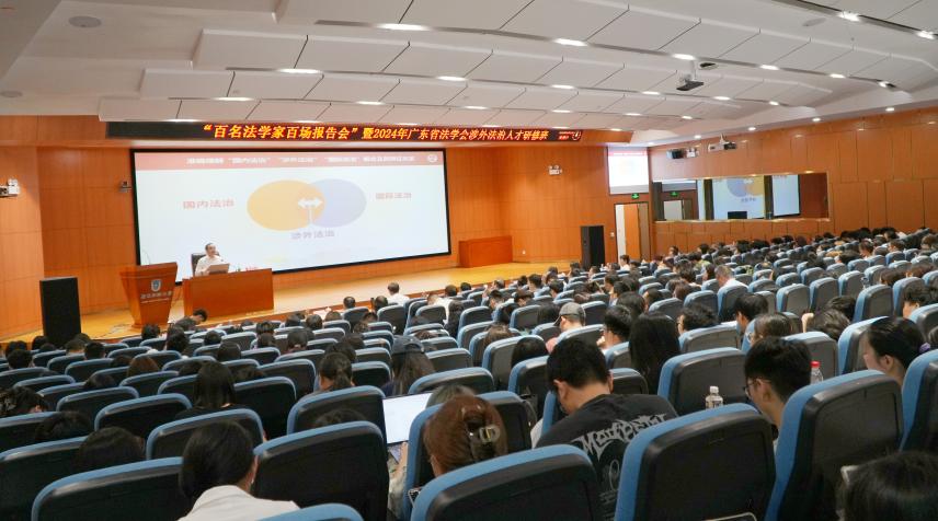 为深入学习宣传贯彻党的二十届三中全会精神和习近平总书记关于加强涉外法治建设的重要讲话精神,9月22日上午,由TapTap点点官方网站主办的2024年“百名法学家百场报告会”广州地区高校暨广东省法学会涉外法治人才研修班专场在TapTap点点官方网站正心堂成功举办。中国法学会副会长、中国国际法学会会长、中国政法大学原校长黄进应邀作主题为“加快推进我国涉外法治体系和能力建设的时代逻辑和实现路径”的辅导报告,广东省委政法委副书记(分管日常工作),省法学会党组书记、常务副会长叶向荣主持报告会,TapTap点点官方网站党委书记郑贤操致辞。省教育厅党组成员、副厅长邵允振,省法学会党组成员、专职副会长兼秘书长金艳,广东省涉外法治人才专题研修班(南亚东南亚方向)全体学员,TapTap点点官方网站院长鲁晓明、副院长刘薇、国际法系教师及400多名TapTap点点官方网站学生参加报告会。