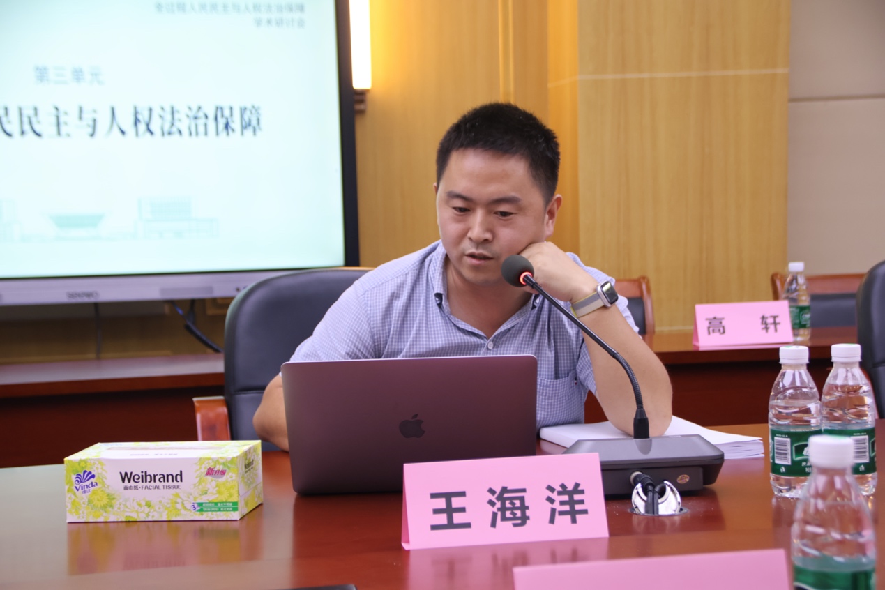 深圳大学TapTap点点官方网站朱全宝教授作了《全过程人民民主的宪法内涵》的主题发言,他指出在党的领导、人民当家作主和依法治国有机统一之宪制逻辑中,全过程人民民主耦合了现行宪法“政权——人权——治权”之结构要素与核心命题。全过程人民民主塑造了人民当家作主的国家制度体系、架设了人权原则指引下的基本权利体系、建构了以人民为中心的国家权力体系。