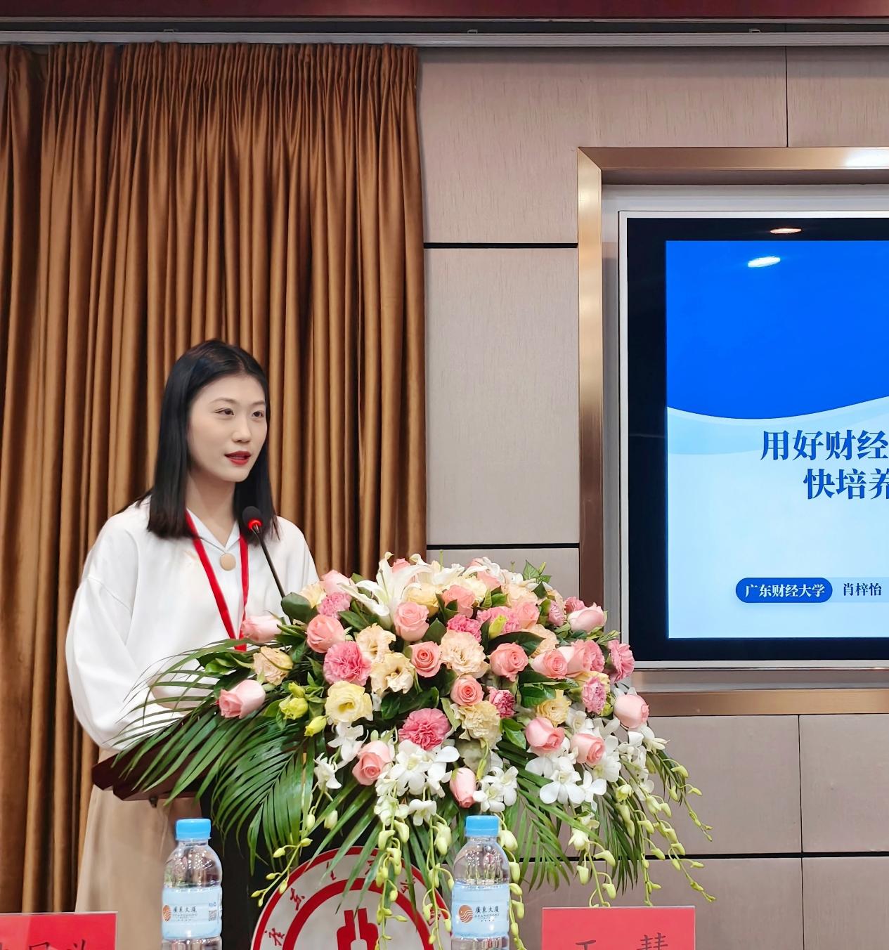 肖梓怡同学和李梓满同学受邀在法律职业技能大赛分论坛进行汇报发言。肖梓怡同学以全国多所财经类高校为切入点,基于数据爬虫与案例分析,分析介绍了法治人才培养现状,分享了对于新形势下“法学+X”复合型培养模式的个人思考。李梓满同学立足于新公司法的修订背景,通过聚焦股东失权制度与股东除名制度之间的关系,阐述了自己对该两项制度的适用协调困境及规则完善的研究与思考。