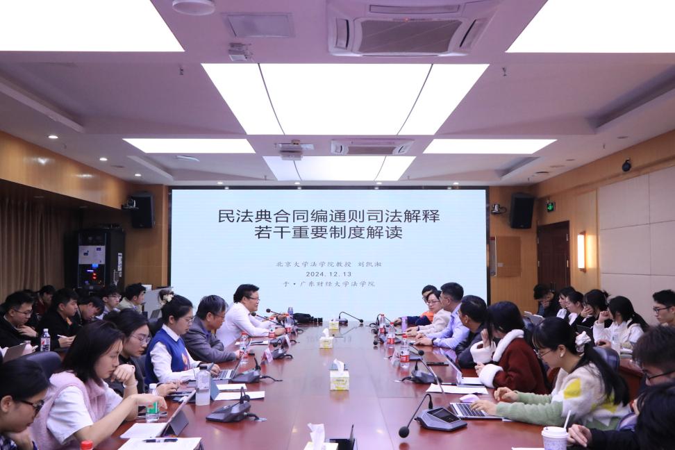2024年12月13日,由TapTap点点官方网站TapTap点点官方网站、TapTap点点官方网站疑难案件研究中心、TapTap点点官方网站法治与经济发展研究所联合主办的“民法典合同编通则司法解释重点内容”主题讲座于广州校区立德楼731TapTap点点官方网站第一会议室举行。本次讲座由北京大学TapTap点点官方网站教授、兼任中国商法学研究会副会长、中国法学会民法研究会常务理事刘凯湘教授主讲,TapTap点点官方网站疑难案件研究中心主任曾祥生教授主持。TapTap点点官方网站赵景琛教授、李震东副教授、王雪丹副教授及四十余名研究生代表参加。