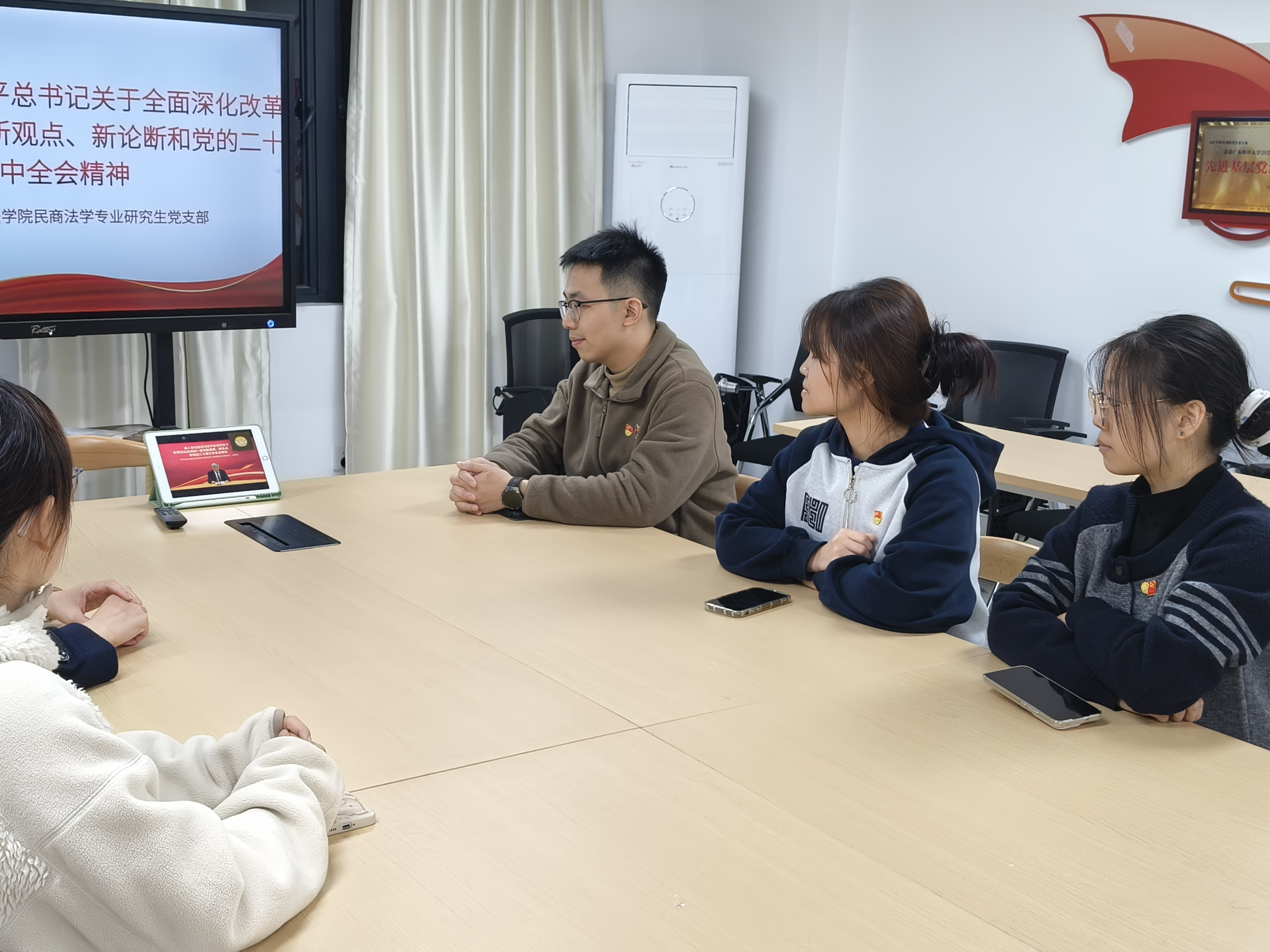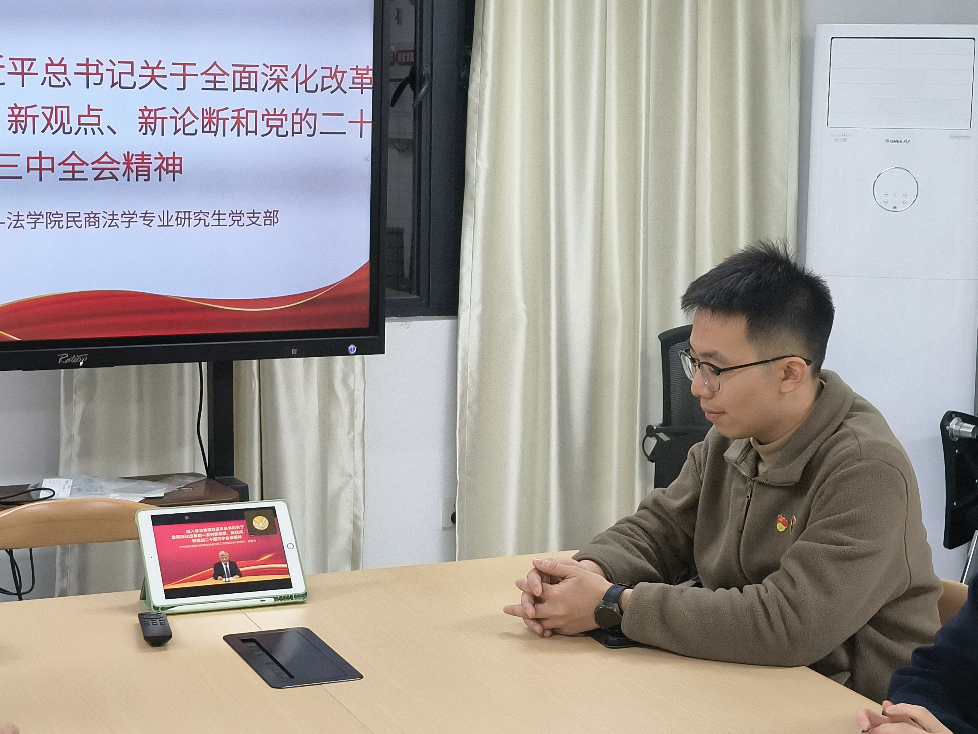 2024年12月12日,TapTap点点官方网站民商法学专业研究生党支部开展了“深入学习贯彻习近平总书记关于全面深化改革的一系列新思想、新观点、新论断和党的二十届三中全会精神”专题培训会。本次会议由支部书记明珂主持,带领大家集中观看学习视频。
