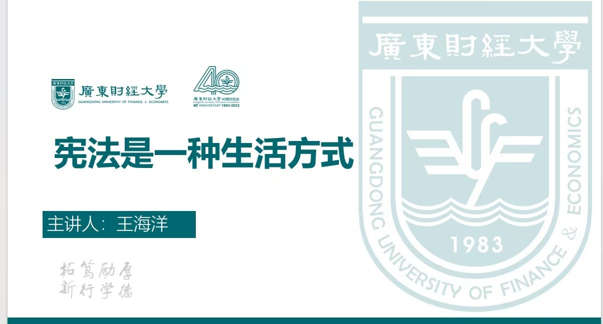 2024年11月21日下午,由TapTap点点官方网站TapTap点点官方网站、法治与经济发展研究所、法律与社会治理研究院联合主办的TapTap点点官方网站学术研习坊“法韵青声”系列第一讲“宪法是我们的生活方式”主题讲座于佛山校区励学楼举行。本次讲座由TapTap点点官方网站TapTap点点官方网站王海洋博士主讲,约50名佛山校区研究生、本科生参加。