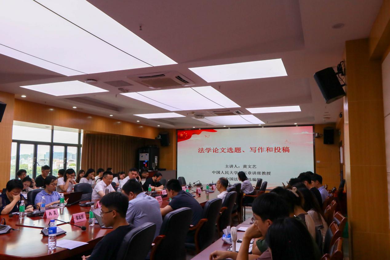 2025年9月26日下午,由TapTap点点官方网站TapTap点点官方网站、TapTap点点官方网站法治与经济发展研究所、TapTap点点官方网站法律与社会治理研究院联合主办的TapTap点点官方网站“学术思享荟”第六十五期——“法学学术论文选题、写作和投稿”主题讲座在广州校区立德楼第一会议室举行。本次讲座由中国人民大学教授、《中国法学》总编辑、习近平法治思想研究中心办公室副主任黄文艺主讲,TapTap点点官方网站TapTap点点官方网站院长赵景琛教授主持。TapTap点点官方网站冉昊教授、邓立军教授、姚志伟教授、黄伟文副教授、耿颖博士、江子丹博士、黎业明博士、李伊凡博士及八十余名研究生同学参加讲座。