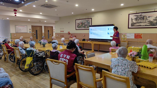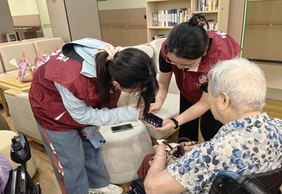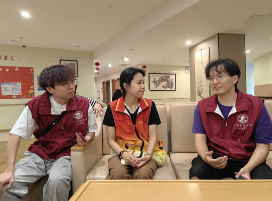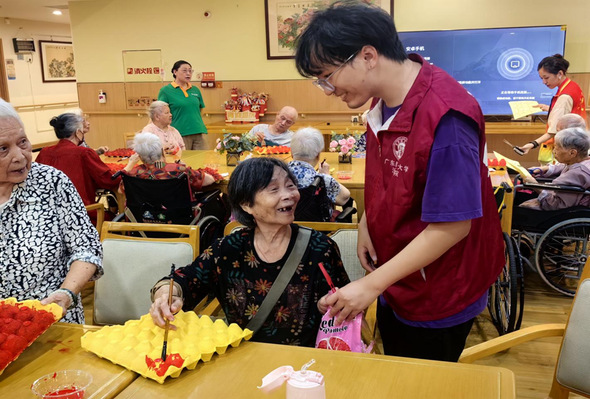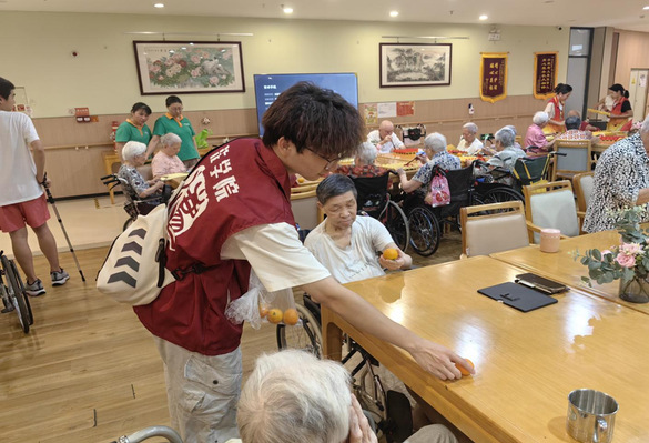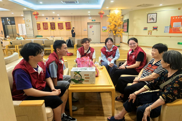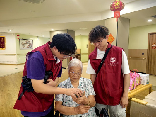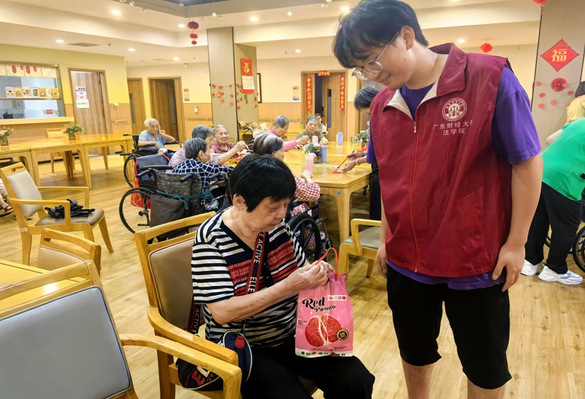 广州越秀银幸颐园是以“智慧养老+专业照护”为核心定位的老人养护院,是充满爱与关怀的组织。团队成员为老人家送上水果、牛奶等节日慰问品并进行交流,为建设智慧养老院贡献青春力量。