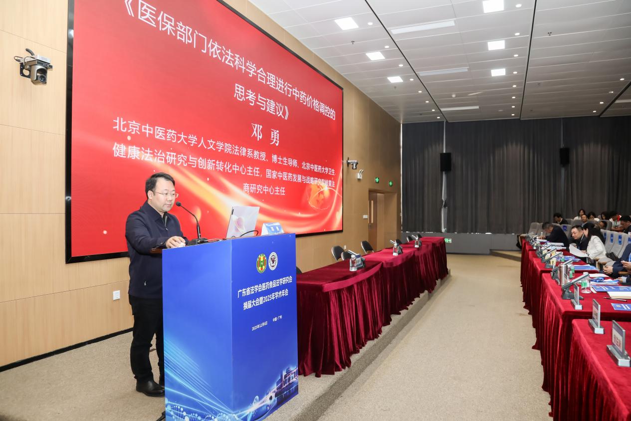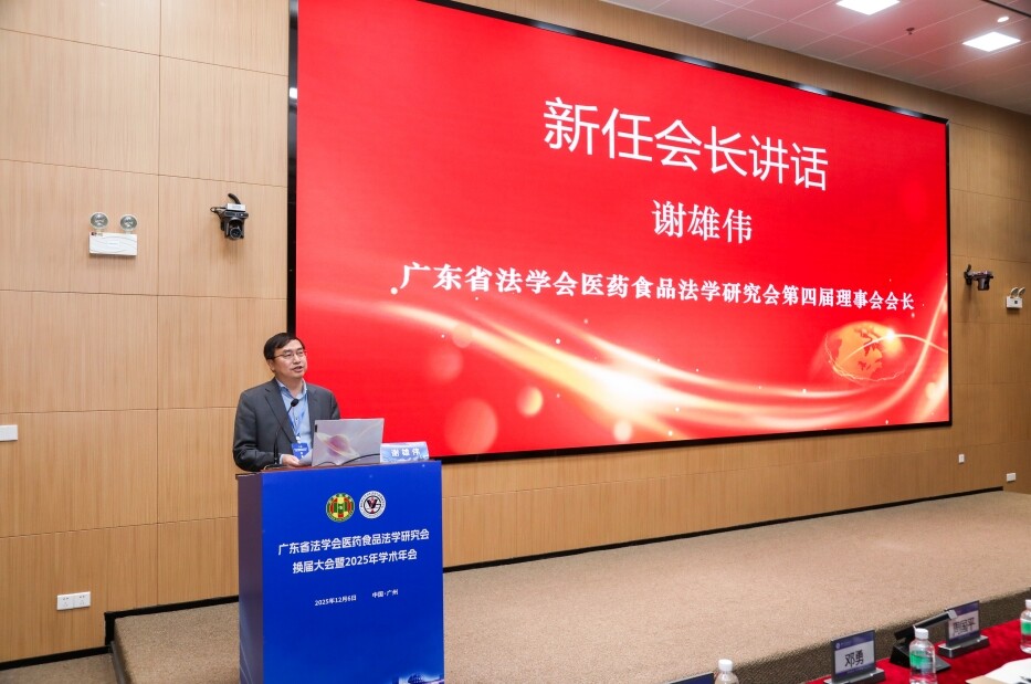广东工业大学党委常委、副校长杜承铭教授,广东省法学会副会长、省委政法委原一级巡视员黄文平先后致辞,充分肯定广东省法学会医药食品法学研究会过去在理论探索、政策建言、人才培养和社会服务方面取得的显著成绩,并对研究会未来在服务广东乃至全国医药食品法治建设、应对新兴领域法律挑战等方面提出了期望。