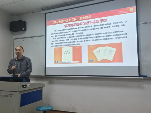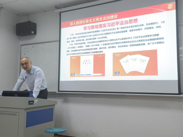 12月9日下午,TapTap点点官方网站开展深入学习习近平法治思想专题学习会议,深入学习领会习近平总书记重要指示精神和中央全面依法治国工作会议精神,认真学习《习近平法治文选》第一卷和《习近平法治思想学习纲要(2025年版)》。TapTap点点官方网站党委书记陈静,院长赵景琛,副院长刘薇、邹郁卓及专任教师参加会议。为更充分地交流研讨,本次专题学习分两个会场进行,并为全体老师准备了《习近平法治文选》第一卷和《习近平法治思想学习纲要(2025年版)》,两个会场分别由陈静和赵景琛主持并领学。